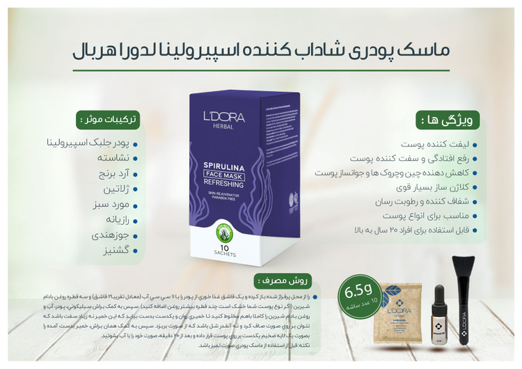 لازم به ذکر است جلبک اسپیرولینا که در این ماسک پودری به کار رفته است، موفق به اخذ گواهینامه بینالمللی Natural Cosmetics با تاییدیه ACS کانادا شده است.