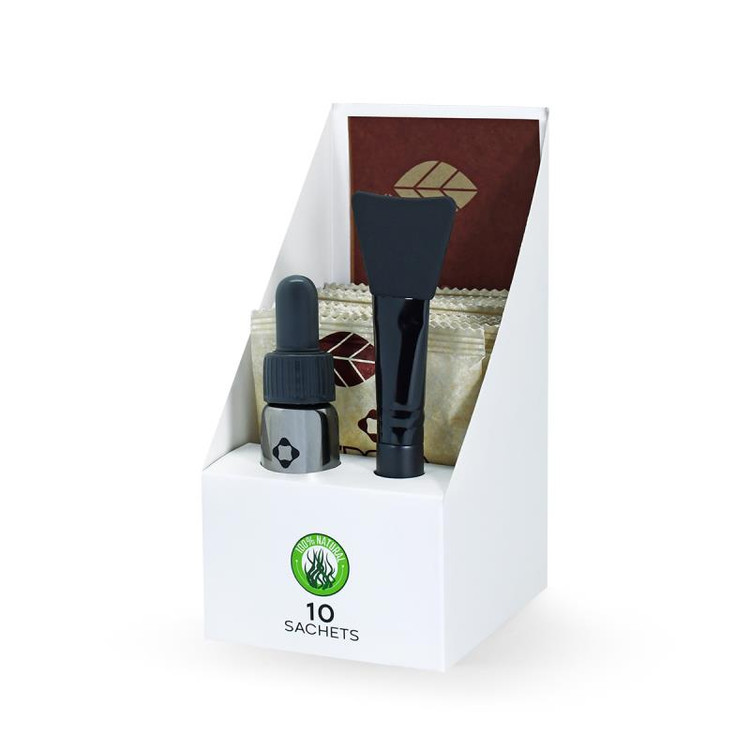بسته را از محل پرفراژ باز کرده و يک ساشه کامل را با 22 سي سي آب (معادل سه قاشق غذاخوري سرپر) و سه قطره روغن بادام شيرين(اگر نوع پوست شما خشک است چند قطره بيشتر روغن اضافه کنيد) مخلوط کنيد. سپس به کمک براش سيليکوني، پودر، آب و روغن بادام شيرين را کاملا باهم مخلوط کنيد تا خميري روان و يکدست بدست بيايد که اين خمير نه زياد سفت باشد که نتوان بر روي صورت صاف کرد و نه آنقدر شل باشد که از صورت بريزد. سپس به کمک همان براش، خمير بدست آمده را بصورت يک لايه ضخيم يکدست بر روي پوست قرار داده و بعد از 20 الي 30 دقيقه، صورت خود را با آب بشوئيد.