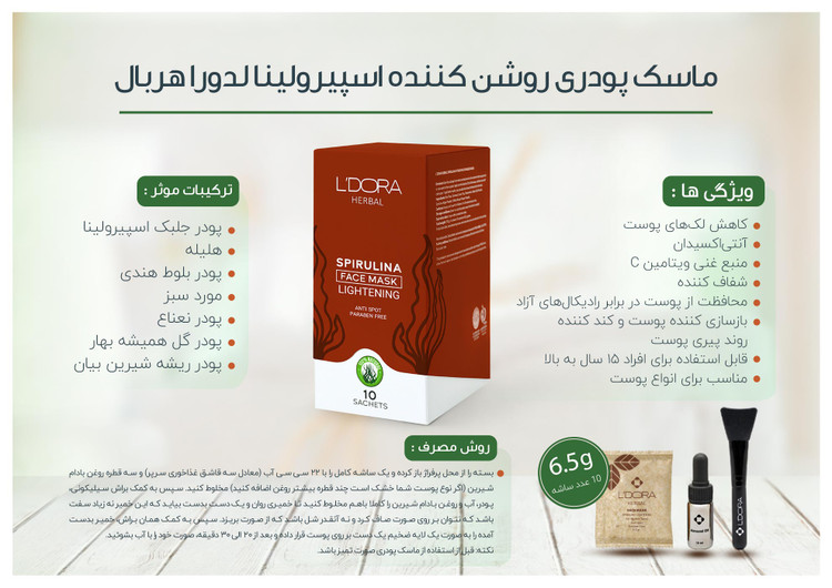 ماسک پودری اسپیرولینا روشن کننده لدورا هربال 10 عددی