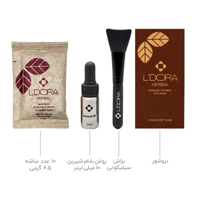 ماسک پودری اسپیرولینا ویتامینه لدورا هربال 10 عددی