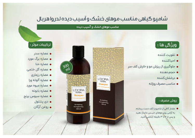 شامپو گیاهی مناسب موهای خشک و آسیب دیده لدورا هربال 300 میلیلیتر